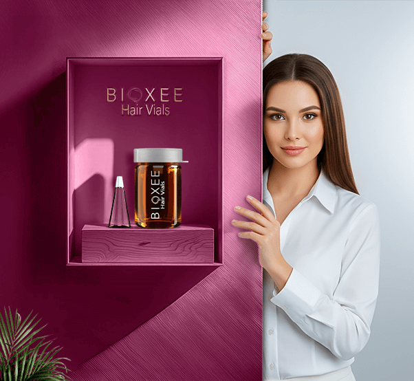 Bioxee is an advanced hair treatment line powered by SRCP Complex and 3 Active Technology, designed to stimulate hair follicles, reduce persistent hair loss, and restore natural density and vitality.
